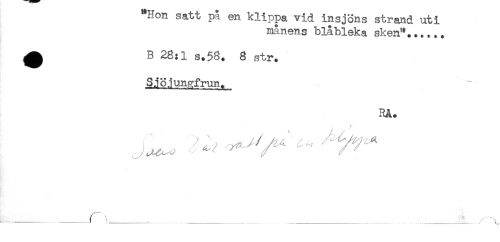 //// Ron satt pa en klippa vid insjöns strand uti //// manens blåbleka sken"...... //// ^ B 28:1 s.58. 8 str. //// .. //// Sjöjungfrun^ //// RÅ. //// - ....." ' - //// - //// t i //// -___.... ..._____! ____^______ ____ _ / ////