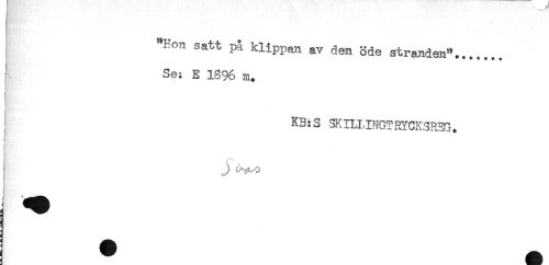 //// "Bon satt på klippan av den öde stranden"....... //// Se: E 1896 m. //// Tt — 1 < //// KB:S SKILI.INGTRYCKSREG. //// j ////