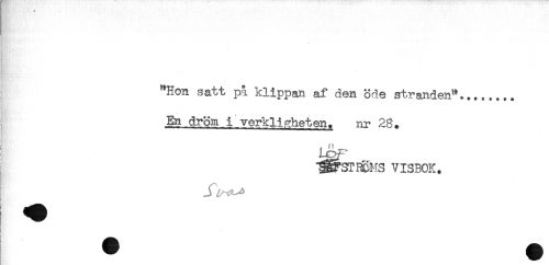 //// . //// "Hon satt på klippan af den ode stranden"........ //// / - - * . . ...... //// En dröm i verkligheten. nr 28. //// VISBOK. //// r-, //// ! ' * ^ ////