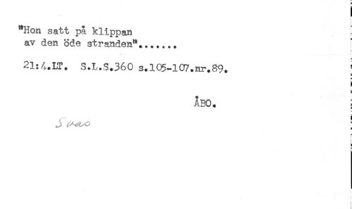 //// "Hon satt på klippan //// av den öde stranden"....... //// — - . . r //// 2l:4.ET. S.L.S.360 s.l05-107.nr.89. ! //// S //// c //// ! //// H //// ÅBO. ! //// J ^^ I //// E //// ! //// i ////