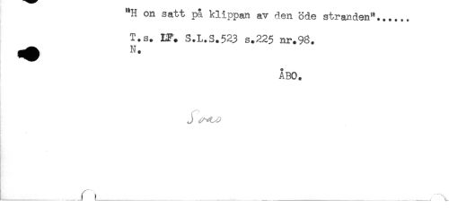 //// il on satt pa. klippan av den öde stranden"...... //// T.s. EF. S.L.S.523 s.225 nr.%. //// ÅBO. //// f, //// j //// I //// . //// K*? //// - ////