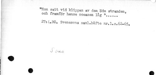 //// "Hon satt vid klippan av den öde stranden, //// och framför henne oceanen låg "...... //// 27:4.B0. Svenssons saml.häfte nr.l.s.62-65. //// ! //// J ////