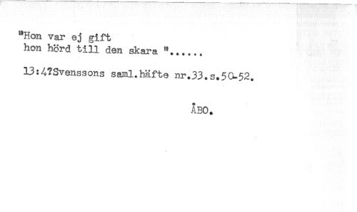 //// "Hon var ej gift //// hon hörd till den skara "...... //// 13:4?Svenssons saml.häfte nr.33.s.5CL-52. //// ABO. ////