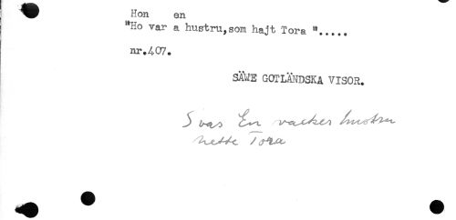 //// i ton en //// "Ho var a hustru,som hajt Tora //// nr.4C7. //// SAME GOTLAJ^DSKA VISOR. ////