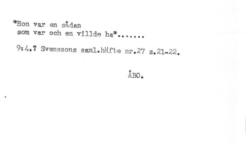 //// "Hon var en sådan //// som var och en villde ha"..*,... //// 9:4.? Svenssons saml.häfte nr.27 s.21-22. //// ABO. //// $ ////