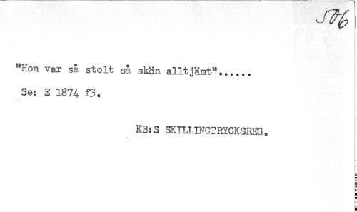//// "Hon var så stolt så skön alltjämt"...... //// Se: E 1874 f3. //// KB:S SKILLINGT RYCK3REG. ////
