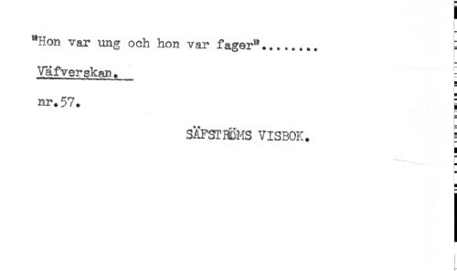 //// "Hon var ung och hon var fager"........ i //// Väfverskan* : //// nr.57. = //// SÄFSTE^MS VISBOK. ! //// ...... C //// H ////
