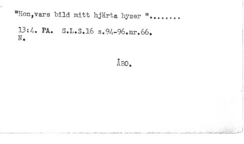 //// "Hon,vars bild mitt hjärta hyser "........ //// 13:4. PA. S.L.S.16 s.94-96.nr.66. //// N. //// ÅBO. //// * ////