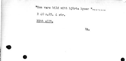 //// "Hon vars bild mitt hjärta hyser "........ //// B 40 s.25. 4 str. //// Mitt allt. //// RA. //// < ////