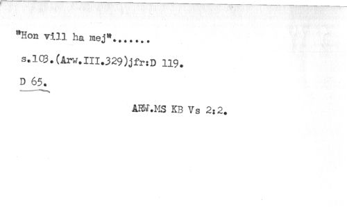 //// "Hon vill ha mej"....... //// s.lQ3.(Ar-j.Ili.329)jfr:D 119. //// D 65. //// AHf.MS KB Vs 2:2. ////