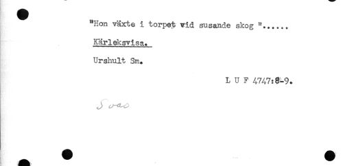 //// "Hon växte 1 torpet vid susande skog + //// Kärleksvisa. //// Urshult Sm. //// L U F 4747:0-9. ////