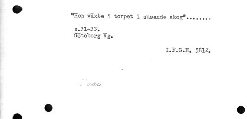 //// "Hon växte i torpet i susande skog"........ //// s.31-33. //// Göteborg Vg+ //// I.F.G.H. 5812. //// * ////