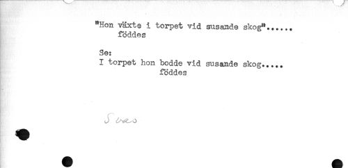 //// "Hon växte i torpet vid susande skog".,.... //// föddes //// Se: //// I torpet hon bodde vid susande skog..... //// föddes ////