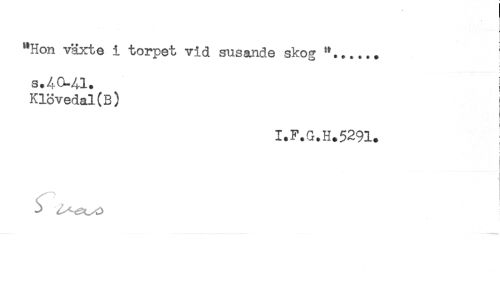 //// "Hon växte i torpet vid susande skog //// S.4CL41. i //// Klövedal(B) //// 1.F.G.H.5291. //// ! //// S ////