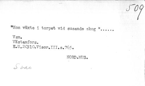 //// "Hon växte i torpet vid susande skog "...... //// V sm. //// Västanfors. //// E.U.2Q3lO.Visor.III.s.765. //// NORD.HUS. //// - ////