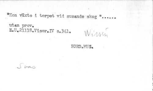 //// "Hon växte i torpet vid susande skog //// utan prov. //// E.U.2lll8.Visor.IV s.341. ^ ,,, ^ //// * //// NORD.MUS. //// . //// - //// ) //// i //// b //// < //// ! //// r //// L //// 6 ////