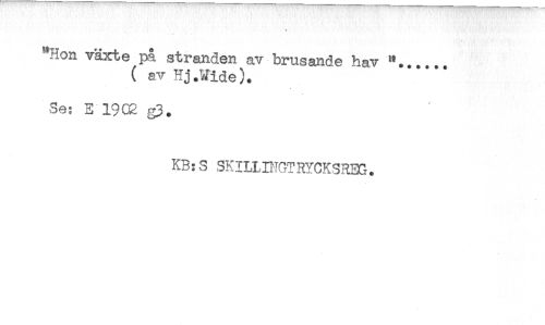 //// ''Hon växte på stranden av brusande hav //// (avHj.Wide). //// Se: E 19C2 g3. //// KB: S SKILLDIGTRYCKSREG. ////