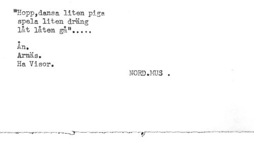 //// "Hopp,dansa liten piga //// spela liten dräng //// låt låten gå"..... //// Ån. //// Arnäs. //// Ha Visor. //// NORD.HUS . ////