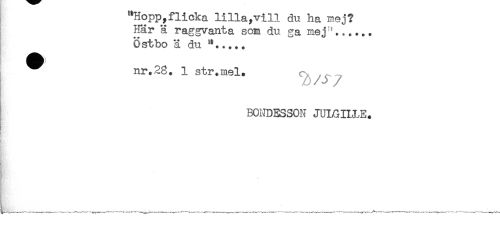//// "Hopp,flicka lilla,vill du ha mej? //// Här ä raggvanta som du ga mej^'.,.... //// östbo ä du //// nr.28. 1 str.mel. //// BONDESSON JUMDL.LE. ////