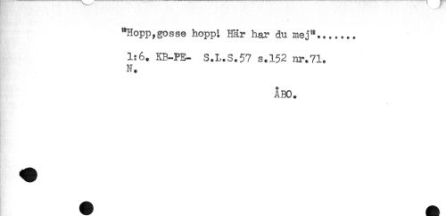 //// "Hopp,gosse hopp: Här har du mej"....... //// 1:6. KB-PE- S.L.S.57 s.152 nr.71. //// M. //// ÅBO. ////