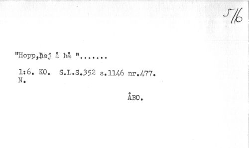 //// i //// "Hopp,hej å ha "....... //// 1:6. KO. S.L.S.352 s.1146 nr.A77. //// N. //// ÅBO. //// ! //// < ////