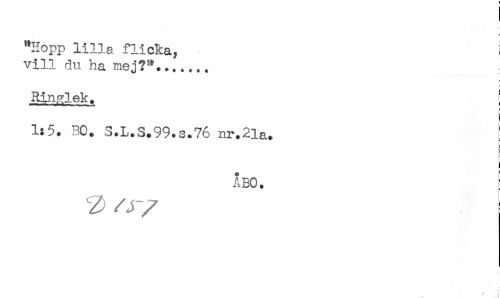 //// "Hopp lilla flicka, //// vill du ha mej?"....... //// Ringlek. i //// : //// 1:5. BO. S.L.3.99.S.76 nr.2la. //// c //// : //// i //// ABO. //// / / ////