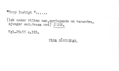 //// "Hopp lustigt "...... //// (lek under vilken man,springande om varandra, //// sjunger end.dessa ord) /)2C6. //// Vgl.25:55 s.193. //// UU-iA SÅNGIEKAR. //// ! //// < ////