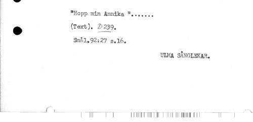 //// "Hopp min Annika ...... //// ^ (Text). 2>239. //// Smal.92:27 s.16. //// UUiA SÅNGLEKAR. //// t //// ..........^ , ^ ^ ^ ......... ^ ^^ ^^^^^^ ^^______^ ^ ////