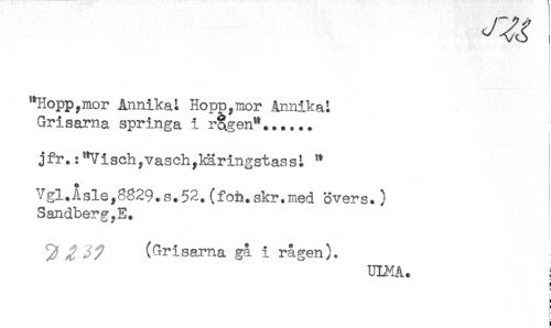 //// "Hopp,mor Annika Hopp,mor Annikat //// Grisarna springa i r§gen"...... //// jfr.:^isch,vasch,knringstass^ " //// Vgl.Åsle,8g29.s.52.(fob.skr.med overs.) //// Sandberg,E. //// i //// t //// - //// (Grisarna gå i rågen). //// UINA. ! //// < //// t ////