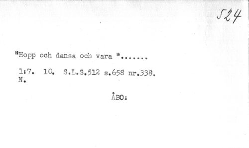 //// } //// i //// "Hopp och dansa och vara "....... //// 1:7. 10. S.L.S.512 s.658 nr.339. //// N. //// ABO: ////