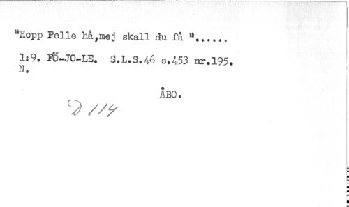 //// "Hopp Pelle hå,mej skall du få "...... //// 1:9. Bt;-JO-LS. S.L.S.46 s.453 nr. 195. //// N. //// i //// - //// ABO. //// F= //// H //// t ////