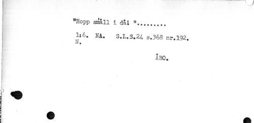 //// "Hopp smäll i dal "......... //// 1:6. NA. S.L.S.24 s.368 nr.192. //// JA! , //// ÅBO. ////