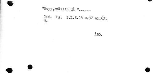 //// "Hopp,smälliii då "...... //// 1:6. PA. S.L.S.16 s.92 nr.63. //// N. //// ÅBO. ////