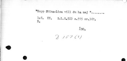 //// "Hopp Stina-Lisa vill du ha mej "........ //// ! 1:8. KN. S.L.S.523 s.555 nr.3 07. //// ! N* //// ^ ÅBO. //// J 4 ////