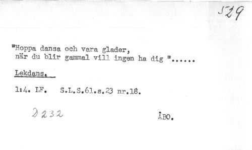 //// "Hoppa dansa och vara gläder, //// nar du blir gammal vill ingen ha dig "...... //// Lekdansi //// 1:4. LP. S.L.S.6l.s.23 nr.18. //// ^ ^ 3 ^BO. ////