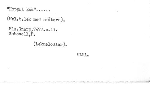 //// "Hoppat knä"...,.. //// (M&l.t.lek med synbarn). //// Hls. Gnarp, 74-77 * s. 13 * //// SchenellyP. //// i //// i //// (Lelcnelodier). ! ////