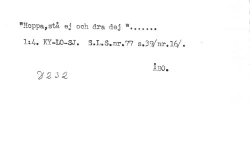 //// "Hoppa, stå ej och dra dej "....... //// 1:4. KY-LO-SJ. S.L.S.nr.77 s.3S/nr.l6/. //// ÅBO. ////
