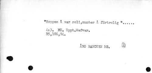 //// "Hoppen å var roli,munter å förtrolig //// i //// 4:3. MU. Uppt.Wefvar. //// i //// < //// ÅBO RAI^CKEI^ MS. ^ //// * //// i ////