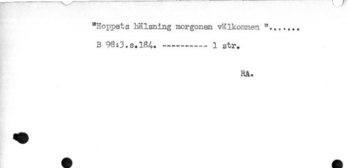 //// "Hoppets hälsning morgonen välkommen "....... //// B 98:3.s. 184. -.........1 str. //// RA. ////