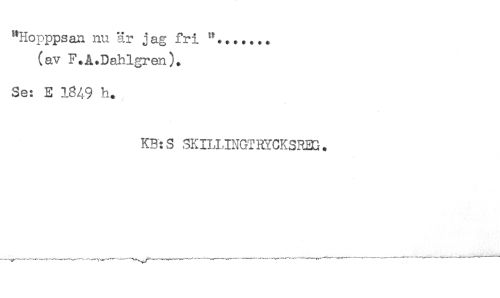 //// "Hopppsan nu är j ag fri //// (av F.A.Dahlgren). //// Se: E 1849 h. //// KB: S SKIU JNGT RYCKSRBH. ////