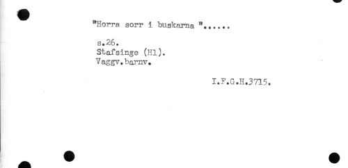 //// "Horra sorr i buskarna "...... //// s.26. //// Stafsinge (Hl). //// Vaggv.barnv. //// I.F.G.H.3715. ////