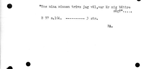 //// ^ "Hos mina minnen trivs jag väl,var är mig bättre //// säg?*'..... //// B 97 s.1%. ........— 3 str. //// RA. //// . ////