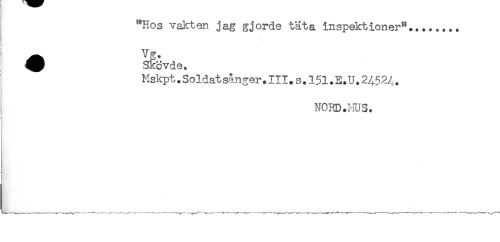 //// "Hos vakten jag gjorde täta inspektioner"........ //// ^ Vg. //// ^ Skövde. //// ] Mskpt.Soldatsånger.III.s.151.E.U.24524. //// NORD.MUS. //// ! //// t //// j //// t //// t //// "T* //// } ////