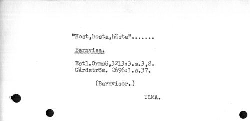 //// "Host,hosta,hästa**t...... //// Barnvisa. //// Estl.Ormsö,3233:3.s.3,8 + //// Gärdström. 2696:1.s.37. //// (Barnvisor.) //// . ^ ^ UIMA. ////