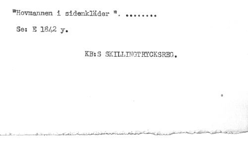 //// "Hovmannen i sidenkläder ". ........ //// Se: E 1842 y. //// KB:S SKILLINGTRYCKSREG. //// $ ////