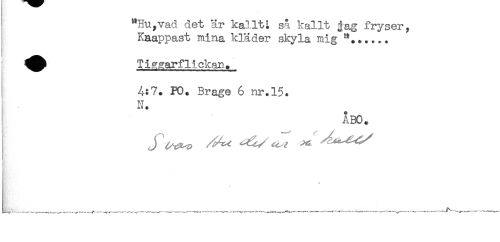 //// "Hu,vad det är kallt^ så kallt gag fryser, //// Kaappast mina kläder skyla mig //// ^^ Ti^ar flickan. //// 4:7. PO. Brage 6 nr.15. //// - - N. //// ) ÅBO. //// j //// - //// . //// 4 ////