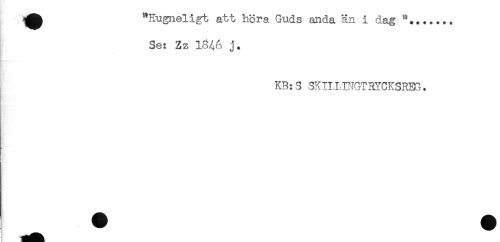 //// ^ "Hugneligt att höra Guds anda än i dag "+...... //// Se: Zz 1846 j. //// KB:S SKILLINGTRYCKSRBG. //// : ////