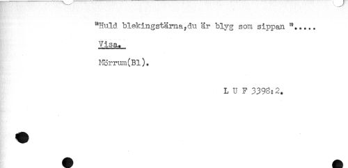 //// "Huld blekingstäma^du är blyg som sippan //// Visa. //// Hörrum(Bl). //// L U F 3393:2, ////