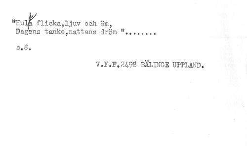 //// "Hu^ flicka, ljuv och öm, //// Dagens tanke,nattens dröm "........ //// s.3. //// V.F.F.249S BÄLINGE UPPLAND. ////