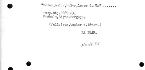 //// ^ "Huluryhuluryhulur,lever du än"........ //// insp.Rtj.3869:23. //// Vidholm,Signe.Bergsjö. //// (Vallvisor,texter t.låtar.) //// Rå BJSP. ////